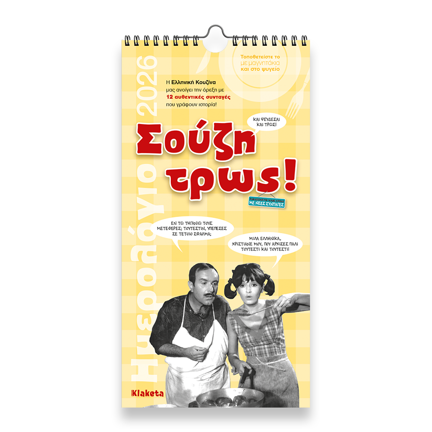 Κυκλοφόρησε το ολοκαίνουριο ημερολόγιο της σειράς με τίτλο “Σούζη Τρώς!” που -κάθε χρόνο- ανανεώνεται με νέες αυθεντικές συνταγές και ισάριθμες φωτογραφίες και ατάκες, από σκηνές φαγητού, του ασπρόμαυρου ελληνικού σινεμά.