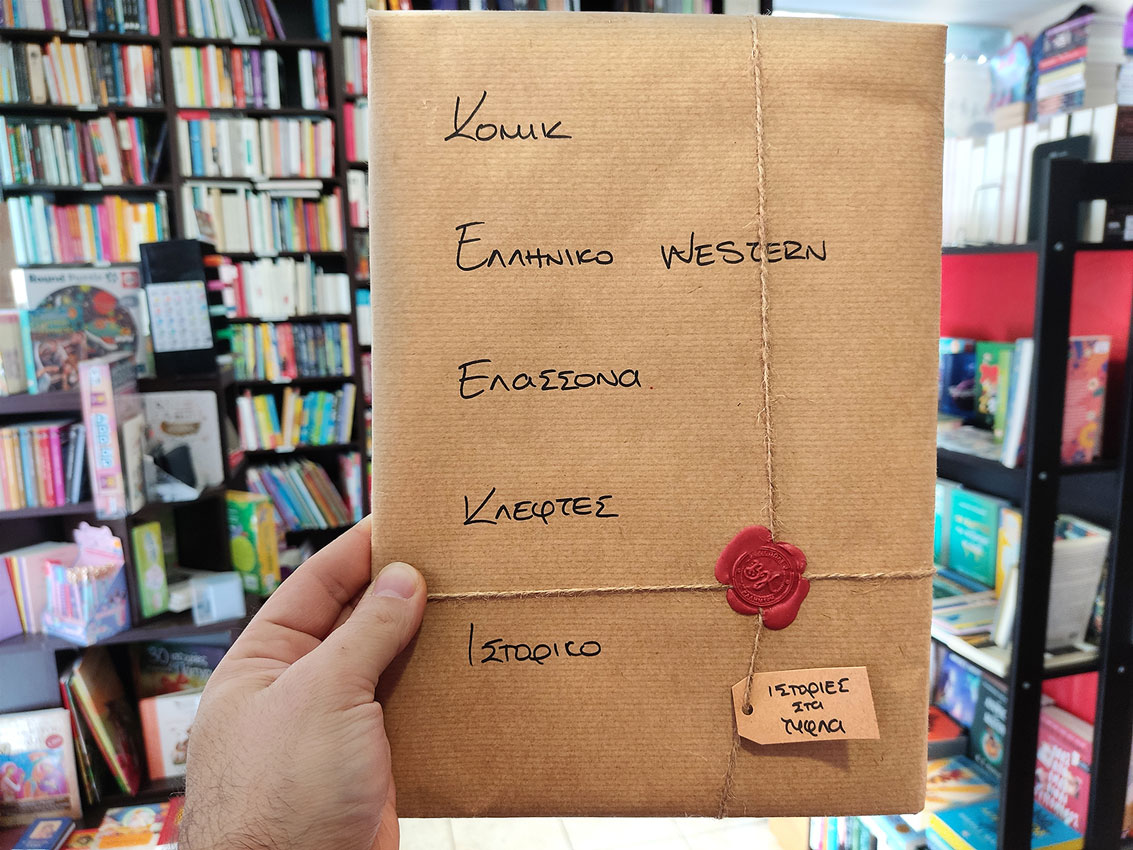 Αυτή είναι μια Ιστορία στα Τυφλά! Είναι ένα βιβλίο-έκπληξη που έχουμε τυλίξει με χαρτί για να μη φαίνεται το περιεχόμενό του. Τι είδους βιβλίο είναι θα το καταλάβετε από τις λέξεις και τις φράσεις-κλειδιά που έχουμε γράψει επάνω του. Κάντε το δικό σας και ανακαλύψτε ποιό βιβλίο κρύβεται πίσω από τις λέξεις.