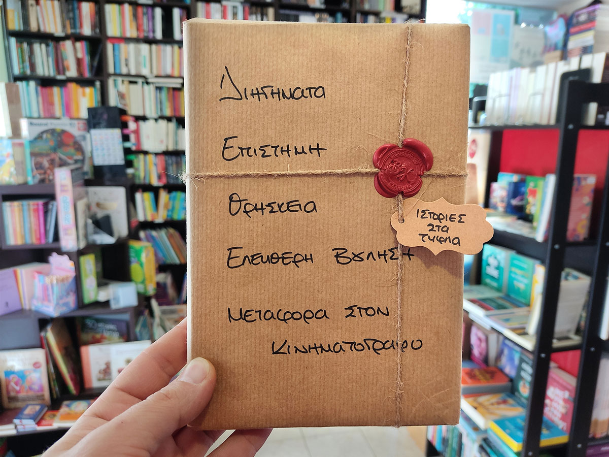 Αυτή είναι μια Ιστορία στα Τυφλά! Είναι ένα βιβλίο-έκπληξη που έχουμε τυλίξει με χαρτί για να μη φαίνεται το περιεχόμενό του. Τι είδους βιβλίο είναι θα το καταλάβετε από τις λέξεις και τις φράσεις-κλειδιά που έχουμε γράψει επάνω του. Κάντε το δικό σας και ανακαλύψτε ποιό βιβλίο κρύβεται πίσω από τις λέξεις.