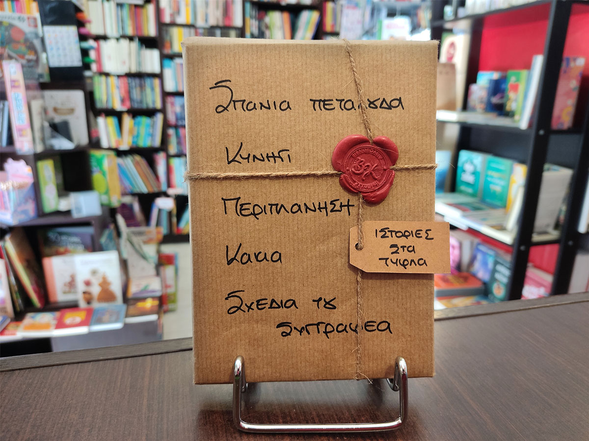 Αυτή είναι μια Ιστορία στα Τυφλά! Είναι ένα βιβλίο-έκπληξη που έχουμε τυλίξει με χαρτί για να μη φαίνεται το περιεχόμενό του. Τι είδους βιβλίο είναι θα το καταλάβετε από τις λέξεις και τις φράσεις-κλειδιά που έχουμε γράψει επάνω του. Κάντε το δικό σας και ανακαλύψτε ποιό βιβλίο κρύβεται πίσω από τις λέξεις.