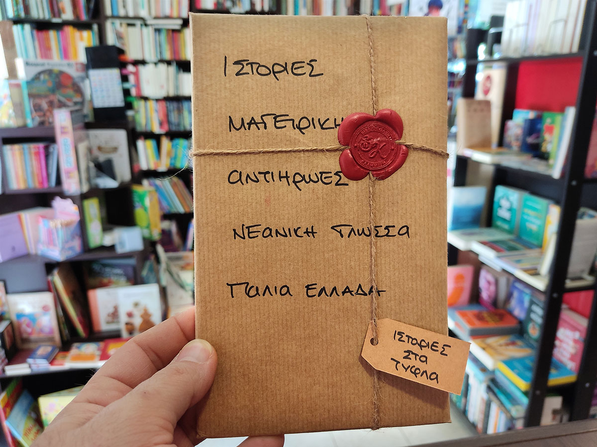 Αυτή είναι μια Ιστορία στα Τυφλά! Είναι ένα βιβλίο-έκπληξη που έχουμε τυλίξει με χαρτί για να μη φαίνεται το περιεχόμενό του. Τι είδους βιβλίο είναι θα το καταλάβετε από τις λέξεις και τις φράσεις-κλειδιά που έχουμε γράψει επάνω του. Κάντε το δικό σας και ανακαλύψτε ποιό βιβλίο κρύβεται πίσω από τις λέξεις.