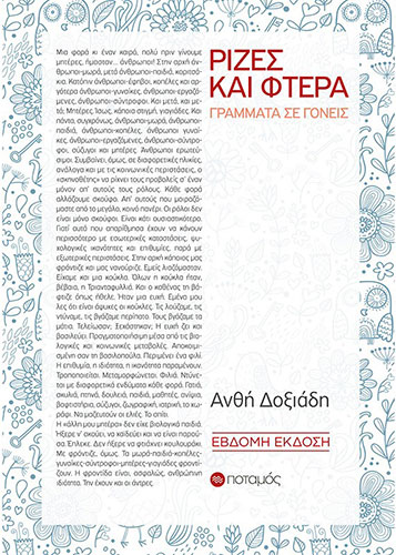 Τα μικρά αυτά κείμενα γράφτηκαν με την πεποίθηση ότι τα δεκαοκτώ χρόνια, που δίνουμε ΡΙΖΕΣ και ΦΤΕΡΑ στα παιδιά μας για να στεριώσουν και για να μπορούν να φύγουν τη σωστή στιγμή, είναι από τα καλύτερα δεκαοκτώ χρόνια και της δικής μας ενήλικης ζωής. Ενώ λοιπόν κάνουμε αυτήν τη μοναδικά σοβαρή δουλειά που πρόκειται να έχει αποφασιστική επιρροή στη ζωή τους ολόκληρη, καλό θα ήταν να περάσουμε όλοι μαζί χαρούμενα και αξέχαστα. Αυτά τα κείμενα μιλούν για κάτι που δεν το βρίσκουμε συχνά γραμμένο πουθενά. Περιγράφουν το τι γίνεται πέραν του “μαμ και νάνι”, μας θυμίζουν τη μαγευτική πλευρά αυτής της ηλικίας και μας βοηθούν να ακούμε τα παιδιά μας καλύτερα με αυτό το “τρίτο” αυτί. Αν μοιάζουν να δίνουν έμφαση στη βρεφική και μικρή παιδική ηλικία είναι γιατί αυτή είναι η καλύτερη προετοιμασία για την υποτιθέμενη δύσκολη περίοδο της εφηβείας. Και για τη ζωή τους ολόκληρη.