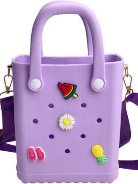 Τσαντάκι Croqbag Cactus με διακοσμητικά Pins 16×20 Cm Μωβ